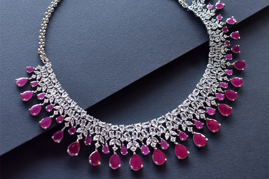 Enchanting White and Red CZ Setting Necklace Set